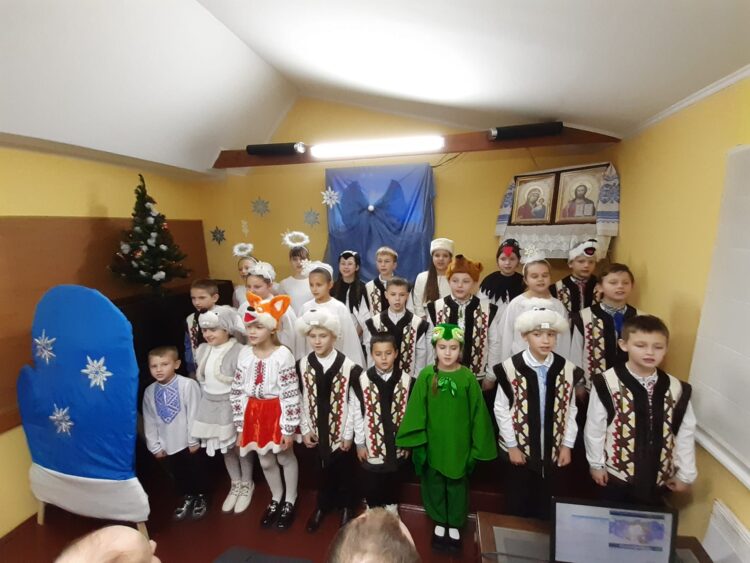 Угодника Божого – святителя Миколая вшанували вихованці студії хорового співу “Дзвіночок” під керівництвом Віри Артемук. Як завжди – творчо, креативно, святково, у теплій, сімейній атмосфері, – бо ж глядачами були найрідніші: батьки, дідусі з бабусями, братики з сестричками,- діти підготували програму, де прославляючи улюбленого Святого звучали пісні та вірші. Окрасою залу стала рукавичка святителя Миколая, у якій, за сценарієм, знайшли прихисток лісові мешканці. Майстерно перевтілилися дівчатка та хлопчики у Мишку, Жабку, Зайчат, Лисичку, Вовка та Ведмедика. Все, до дрібниць продумала талановита Віра Степанівна: декорації, костюми, музичне наповнення, а діти старанно, із задоволенням та легкістю втілили в життя задум свого керівника. Всі присутні на святі отримали величезну порцію хорошого настрою і позитиву, а юні артисти – подарунки Святого Миколая з рук батюшки Віталія та батюшки Романа.