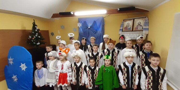 Угодника Божого – святителя Миколая вшанували вихованці студії хорового співу “Дзвіночок” під керівництвом Віри Артемук. Як завжди – творчо, креативно, святково, у теплій, сімейній атмосфері, – бо ж глядачами були найрідніші: батьки, дідусі з бабусями, братики з сестричками,- діти підготували програму, де прославляючи улюбленого Святого звучали пісні та вірші. Окрасою залу стала рукавичка святителя Миколая, у якій, за сценарієм, знайшли прихисток лісові мешканці. Майстерно перевтілилися дівчатка та хлопчики у Мишку, Жабку, Зайчат, Лисичку, Вовка та Ведмедика. Все, до дрібниць продумала талановита Віра Степанівна: декорації, костюми, музичне наповнення, а діти старанно, із задоволенням та легкістю втілили в життя задум свого керівника. Всі присутні на святі отримали величезну порцію хорошого настрою і позитиву, а юні артисти – подарунки Святого Миколая з рук батюшки Віталія та батюшки Романа.