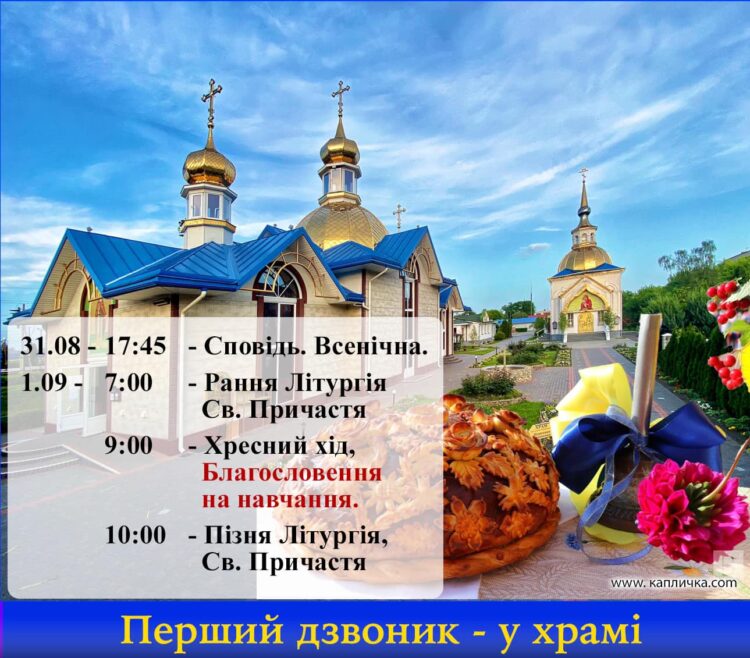 1 вересня, у неділю, о 9:00 відбудеться Молебень-благословення на Новий навчальний рік.