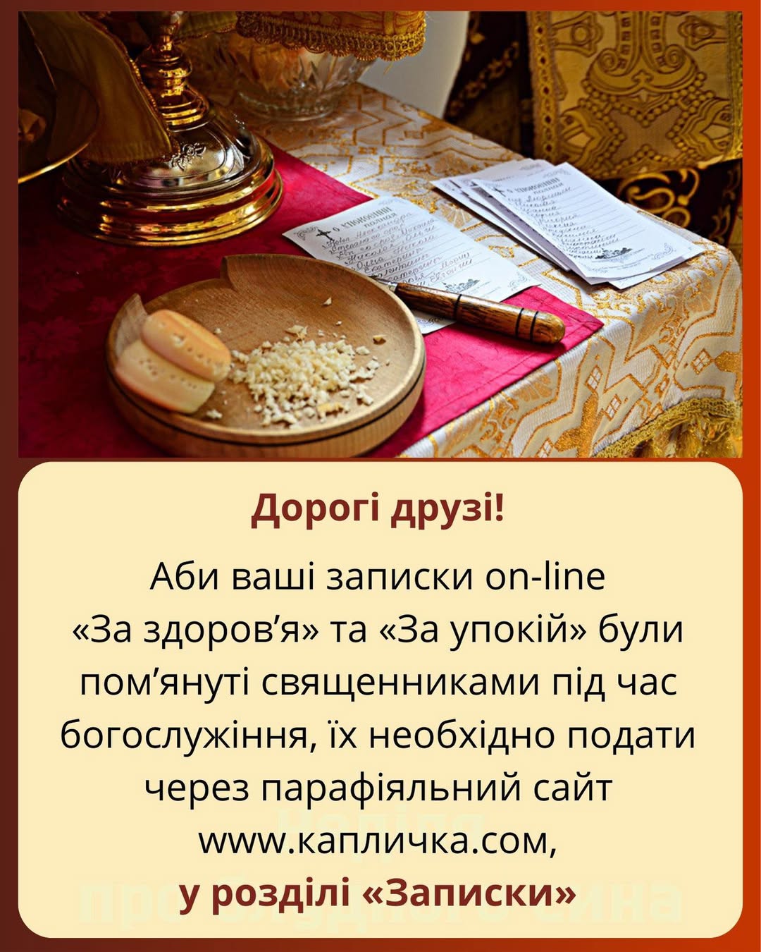 Якщо у Вас немає можливості подати записки на поминовіння в храмі, це можна зробити on-line за адресою сайту «Капличка»: www.капличка.com/podaty-zapysku<br><br><a href="https://xn--80aaxgce1a0e.com/wp-content/uploads/2026/01/616306595_911680884552362_7418508798613510308_n.jpg"><img class="wp_automatic_fb_img" title="" src="https://xn--80aaxgce1a0e.com/wp-content/uploads/2026/01/616306595_911680884552362_7418508798613510308_n.jpg" /></a>