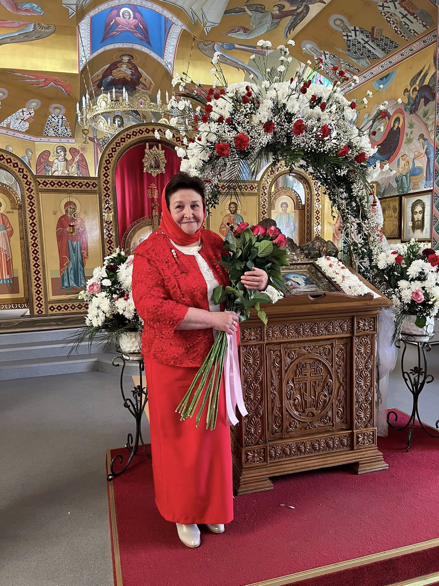 Значну частину свого свідомого життя Ви віддали служінню в храмі, де Ви є членом церковного активу, несучи надзвичайно важливий подвиг старшої сестриці — з вмінням організувати навколо людей, відповідальністю до доручених справ і щирим та небайдужим серцем .
