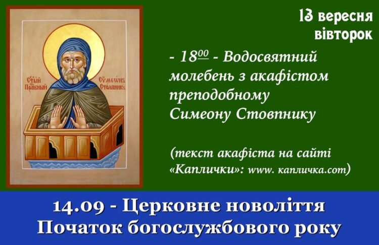 – 18:00 – Водосвятний молебень з акафістом преподобному