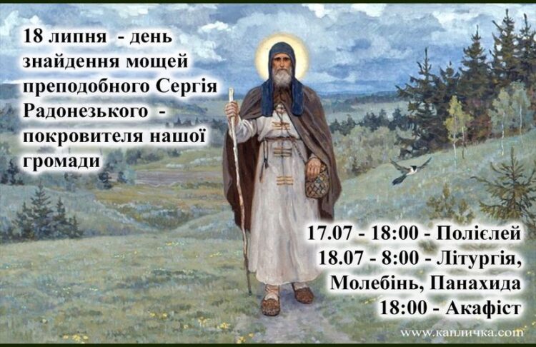 Запрошуємо до спільної молитви покровителю нашої громади. 17.07 - 18:00 - Полієлей 18.07 - 8:00 - Літургія, Молебінь, Панахида 18:00 - Акафіст. Відео трансляція на ютуб-каналі "Капличка". Записки за потреби можна подати через сайт www.капличка.сом
