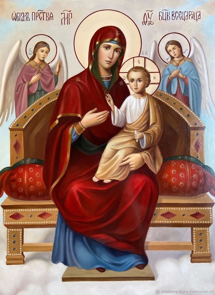 Просла́вися ди́вно свята́я ико́на Твоя́, «Всецари́ца» имену́емая, егда́ цельбоно́сно яви́ся Твое́, Богома́ти, изображе́ние; вопию́щим же пред ним с ве́рою исцеле́ния подае́ши, да умножа́ются пе́сни сицевы́я: