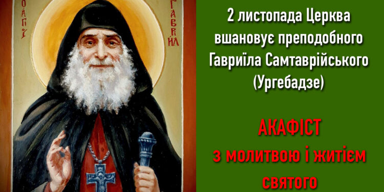 О́тче святы́й, блаже́нне Гаврии́ле, преподо́бным дре́вним подо́бниче и тве́рдый испове́дниче, с ма́лых лет словеса́ Госпо́дня восприя́вый и тем ре́вностно после́довавый! Се мы, раби́ лени́вии и лука́вии тебе́ предстои́м с моли́твою, не име́юще ни подвиго́в твои́х, ниже́ смире́ния, но себе́ на всяк день в души́ хва́ляще и велича́юще, еще́ же и враго́в вовне́ себе́ и́щуще! Не и́мамы пред Бо́гом чем оправди́тися! Но моли́ за нас, о́тче, да пода́ст нам Госпо́дь си́лы сло́во Свое́ разуме́ти и исполня́ти, я́коже тебе́ от младе́нства откры́. Да бу́дем мы, себе́ христиа́ны имену́юще, не то́кмо слы́шателие рассе́яннии, но и исполни́телие. Да уразуме́ем лице́ бытия́ своего́, я́ко ничесо́же мо́жем кроме́ по́мощи Бо́жия. И да взы́щем тоя́ и да возлю́бим Его́, и да прилепи́мся к Нему́ все́ю душе́ю свое́ю, всем се́рдцем свои́м, всем помышле́нием свои́м, и да бу́дет се́рдце на́ше, по сло́ву твоему́, пре́данным Го́споду. И да пода́ст нам зало́г спасе́ния в ду́ши на́ша, ра́дость, мир и любо́вь в сердца́ на́ша, примире́ние во всех нестрое́ниих на́ших, утеше́ние во всех ско́рбех на́ших, не от дел на́ших, но моли́твами твои́ми, по неизрече́нней ми́лости Свое́й, Ему́же сла́ва и держа́ва во ве́ки веко́в. Ами́нь.