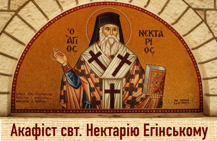 О Богомудрый и всесвятый отче Нектарие, святителю Христов, чудотворче великий и преславный. К тебе ныне прибегаем верою и любовию чтущии тя, похвалы сия приносяще от всего сердца и помышления. Ты, угодниче Божий, явился еси ныне яко звезда утренняя, озаряющая мира сего помраченныя концы светом благодати Христовой, юже стяжал еси неложно смиренным житием твоим и кроткими нравы, нетленных и премирных обетований сподобльшеся. Сего ради мы, недостойнии, молим тя прилежно: отче святый Нектарие, не забуди нас, к тебе усердно притекающих. Свет сый ныне, просвети души наша, помраченныя страстьми, озари наш ум и обнови помышления во еже поучатися нам Божественным и священным образом и нектому о суетных пещися. Утверди нас, преподобне отче, в вере, надежде и любви ко Господу Богу нашему, исцели болезни душевныя и телесныя, буди нам покров и прибежище в скорбех и напастех, вразумление и исправление во гресех, благодать независтную подающе всегда, яко да прославим Единаго Истиннаго Бога, дивнаго во святых Своих, Отца и Сына и Святаго Духа, ныне и присно и во веки веков. Аминь