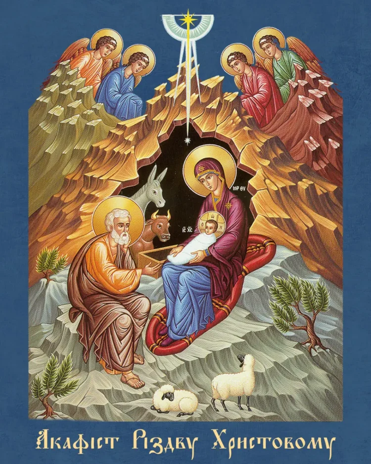 Име́яй престо́л не́бо и подно́жие зе́млю ме́ста ни еди́на обре́те во оби́тели, те́мже Чи́стая Де́ва, Ма́ти Твоя́, сокрыва́ет Тя от хла́да нощна́го в худе́м верте́пе и во я́слех ско́тиих полага́ет Тя, Сокро́вище го́рняго ми́ра и Зижди́теля вся́ческих. Дивя́щеся милосе́рдию Твоему́, си́це Тебе́ зове́м: