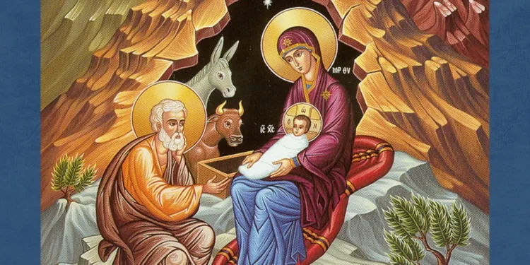 Пребезначальное Начало, Боже Святый и Вечный, и всея твари Содетелю! Киими словесы возблагодарим и киими песньми возвеличим Твое нас ради человек неизреченное снизхождение, волею Божества Своего не отступльше, и недр Отчих не разлучаяся, Бог сый, яко человек, в вертепе безсловеснем ныне положился еси, Христе Боже наш! Кто исповесть неизглаголаннаго сего таинства величие и преславнаго сбытия таинство: Сын Божий Сын Девы является, да свободит мир от клятвы законныя, и сыны греха и беззакония чадами Божиими, наследниками вечных благ соделает, Себе же, яко жертву непорочную и всесвятую, в залог спасения падшаго человека да принесет. Иисусе Сладчайший, Владыко Всемилостивый! Твоим Пребожественным снизхождением юдоль земная в храм Божественныя славы Твоея освятися, и вси живущии на ней Небесным веселием исполнишася. Сподоби убо и нас в день преславнаго Рождества Твоего чистым сердцем и отверстою душею исповедати Тя Истиннаго Агнца Божия, услаждающаго и укрепляющаго нас надеждою грядущих благ в немеркнующем Свете Трисиятельнаго Божества, Имже вся живет и движется, Имже обновление нашего первообразнаго бытия да усовершится. Ей, Господи, всякаго благодеяния богатый Дателю и Подателю Благий, за еже тако возлюбил еси мир, яко вся скорби и болезни наша на Себе понести изволил еси, не остави нас, дондеже суета земная скорбьми и напастьми не изсушила души наша, и не погибе путь спасения под ногама нашима, да не посмеются о нас врази наши, но даруй нам в свете Твоего Божественнаго Откровения познати путь мира, добра и истины, и воззови ненасытною жаждою по Тебе, Спасителе нашем, во еже творити волю Твою преблагую во страсе Твоем, и в похвалу неизреченному снизхождению Твоему, яко кадило благовонное, приносити Тебе житие нескверное и любовь нелицемерную, да в делех наших и во уповании веры нашея непрестанно совершается воля Твоя святая, и во веки не умолкнет под Небесем слава Твоя, слава, яко Единороднаго от Отца, исполнь благодати и истины. Яко о Тебе, ныне плотию от Безневестныя и Пречистыя Девы Марии рождшемся, вся колена Небесная и земная, радости исполняющеся, велегласно исповедуют: с нами Бог! Емуже честь и поклонение подобает, Отцу и Сыну и Святому Духу, во веки веков. Аминь.