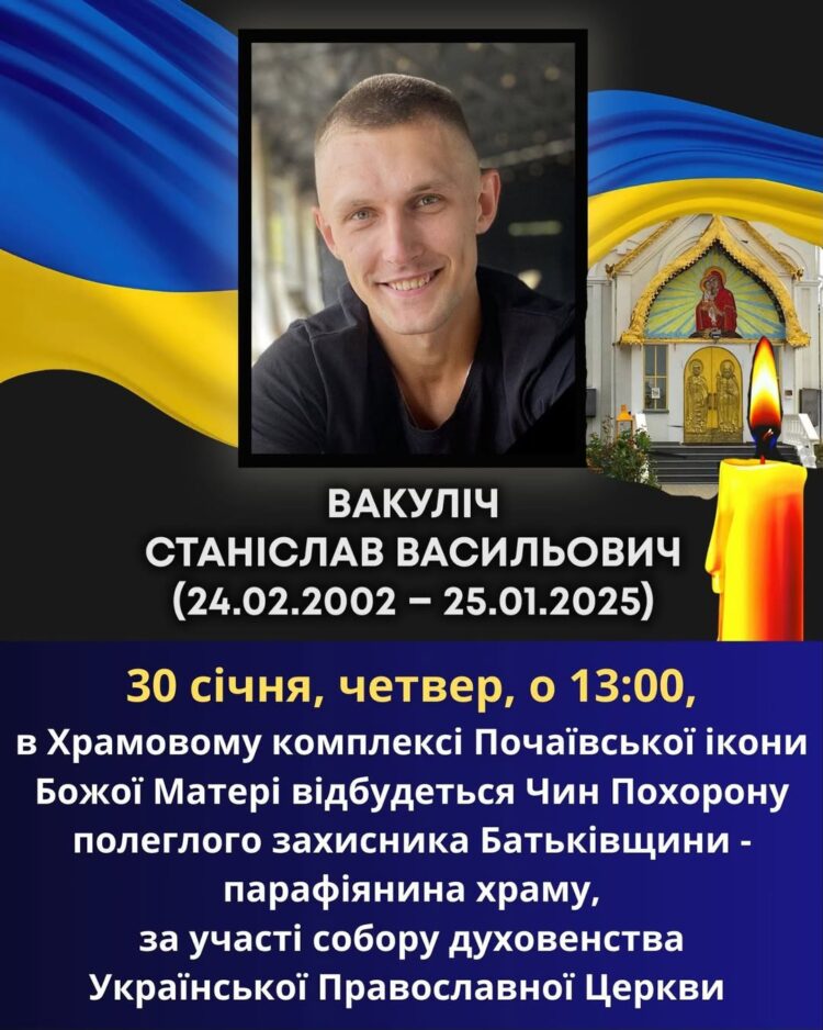 30 січня, о 13:00, у нашому храмі відбудеться Похорон воїна Станіслава (у Хрещенні – н.п.Стахія).