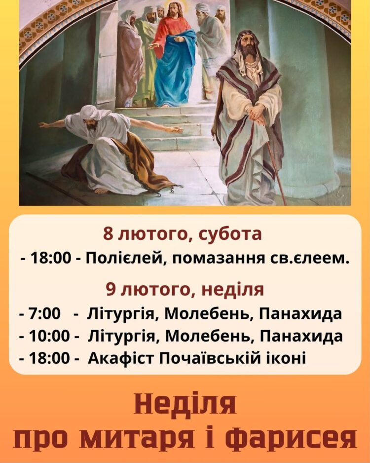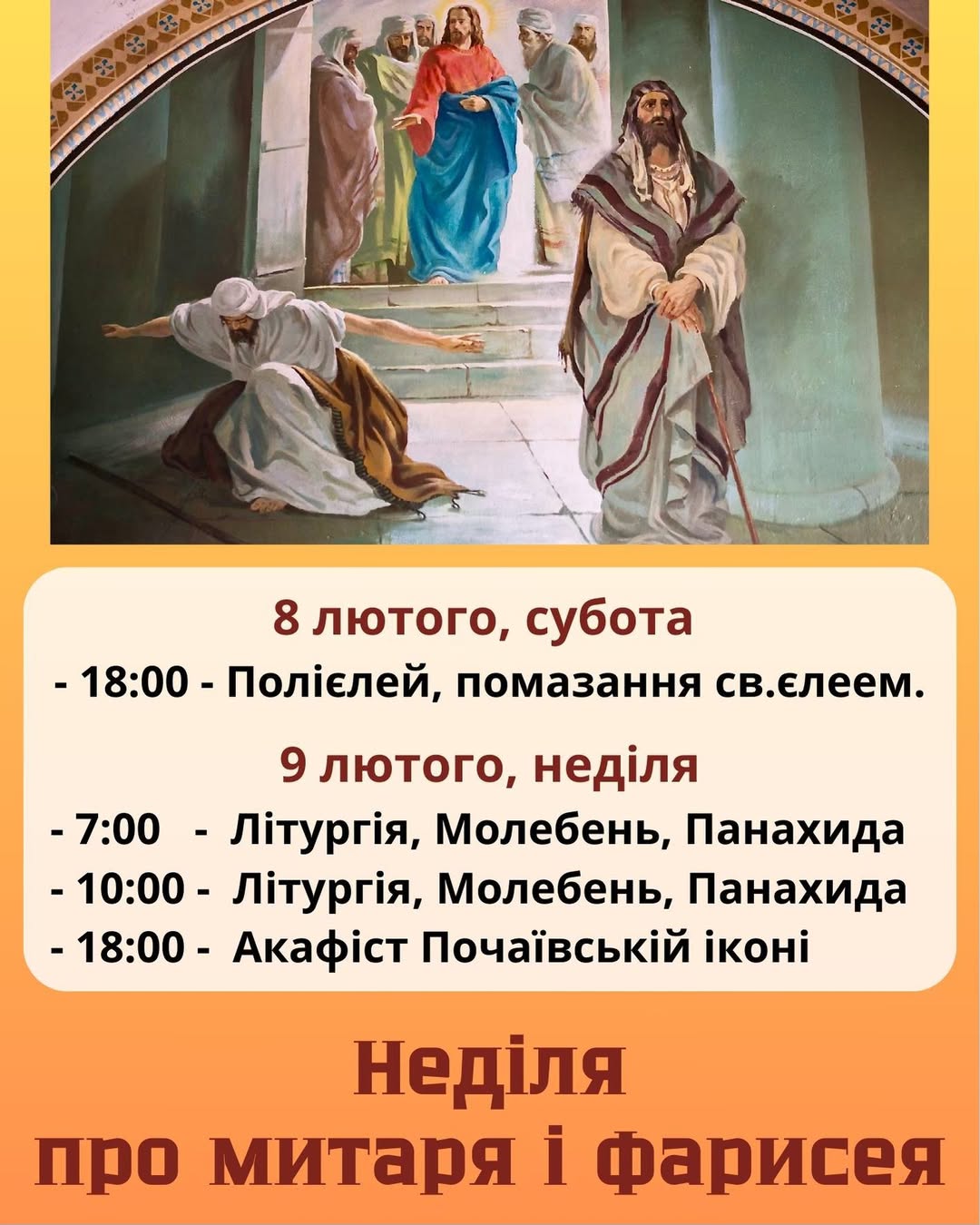 Фарисей, ставши, так молився про себе: Дякую, Боже, Тобі, що я не такий, як інші люди: здирщики, неправедні, перелюбні, або як цей митник. Я пощу два рази на тиждень, даю десятину з усього, що тільки надбаю!