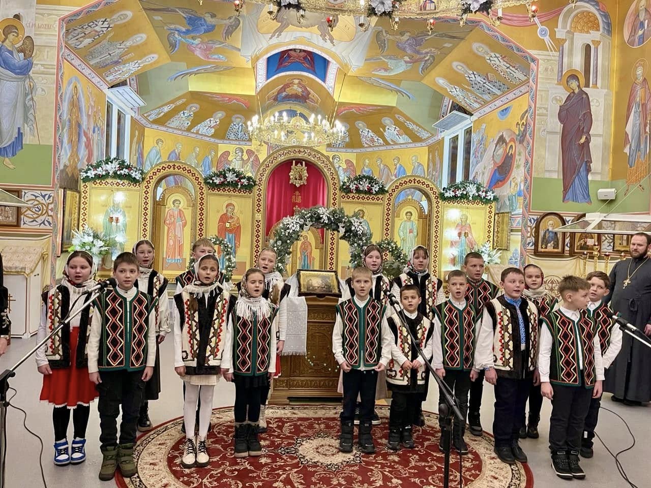 Колядки та різдвяні вітання лунали у храмі та церковному дворі храмового комплексу Почаївської ікони Божої Матері.