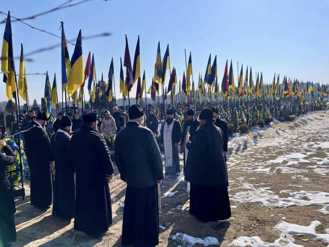 Богослужіння було присвячене третій річниці віроломної агресії росіян проти України. Разом із священниками молилися родичі полеглих воїнів — парафіяни храмів Української Православної Церкви.