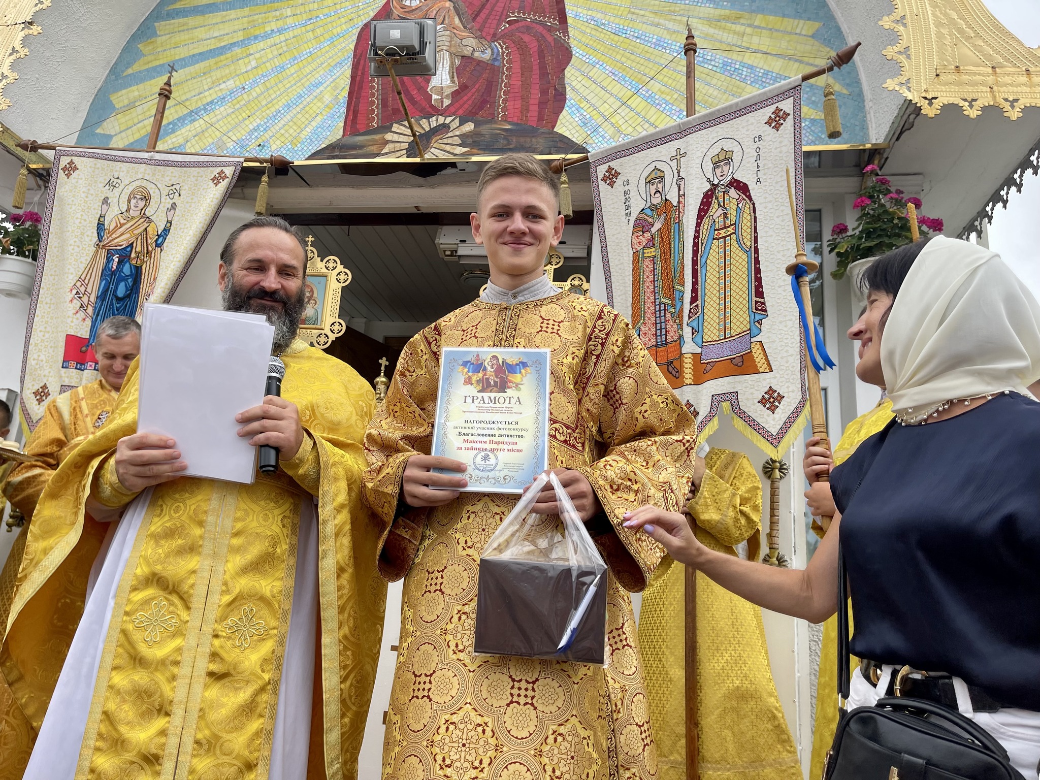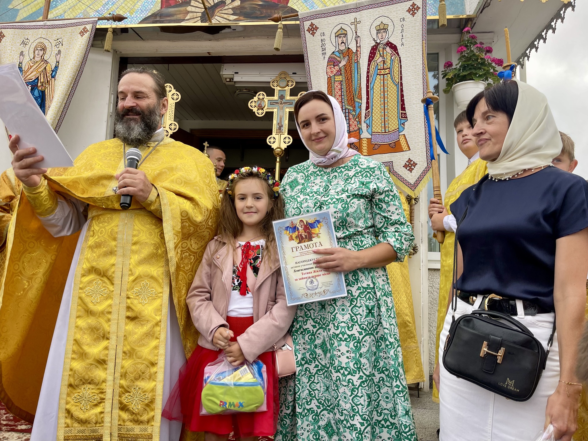 1 вересня, під час Молебню-благословення на початок Нового навчального року, було підведено підсумки фотоконкурсу Недільної школи «Благословенне дитинство». Настоятель громади протоієрей Володимир Ровінський вручив переможцям та активним учасникам грамоти, а ініціатор заходу – директор Недільної школи Леся Миколаївна Коновалова – памʼятні подарунки.