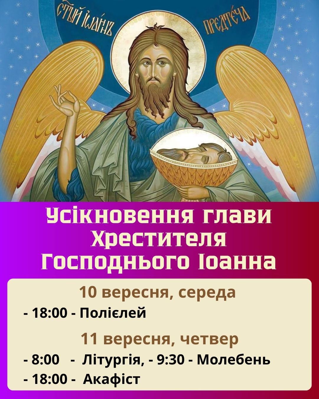 Церква вшановує Усікновення святого Іоанна Предтечі 11 вересня.