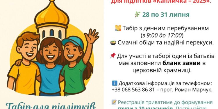 Запрошуємо юних парафіян та їхніх друзів віком від 9 до 14 років провести незабутні літні дні в дружньому колі однолітків!
