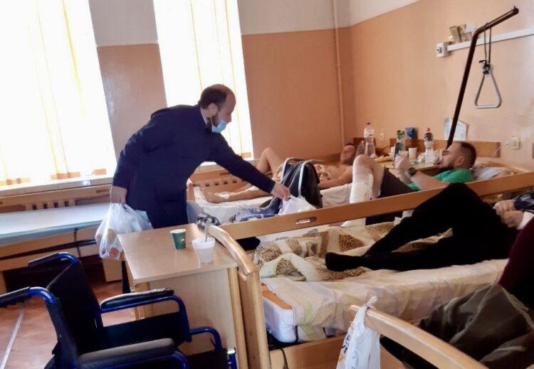 Священник храмового комплексу Почаївської ікони Божої Матері протоієрей Віталій Попко, координатор благодійного проекту Леся Миколаївна Коновалова, за підтримки сестриць та членів братства громади, підготували близько 90 подаруночків, котрі вручили пораненим воїнам ЗСУ.