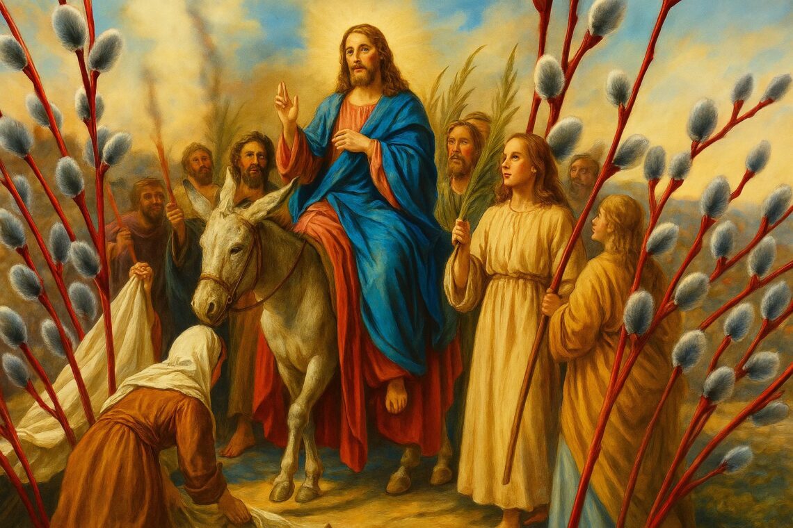 Люди, які чули про чудеса Ісуса, особливо про воскресіння Лазаря, вийшли зустрічати Його з пальмовими гілками (у нас їх замінюють вербові гілки). Вони постилали свій одяг на дорогу і вигукували: “Осанна! Благословен Той, Хто йде в ім’я Господнє, Цар Ізраїлів!”