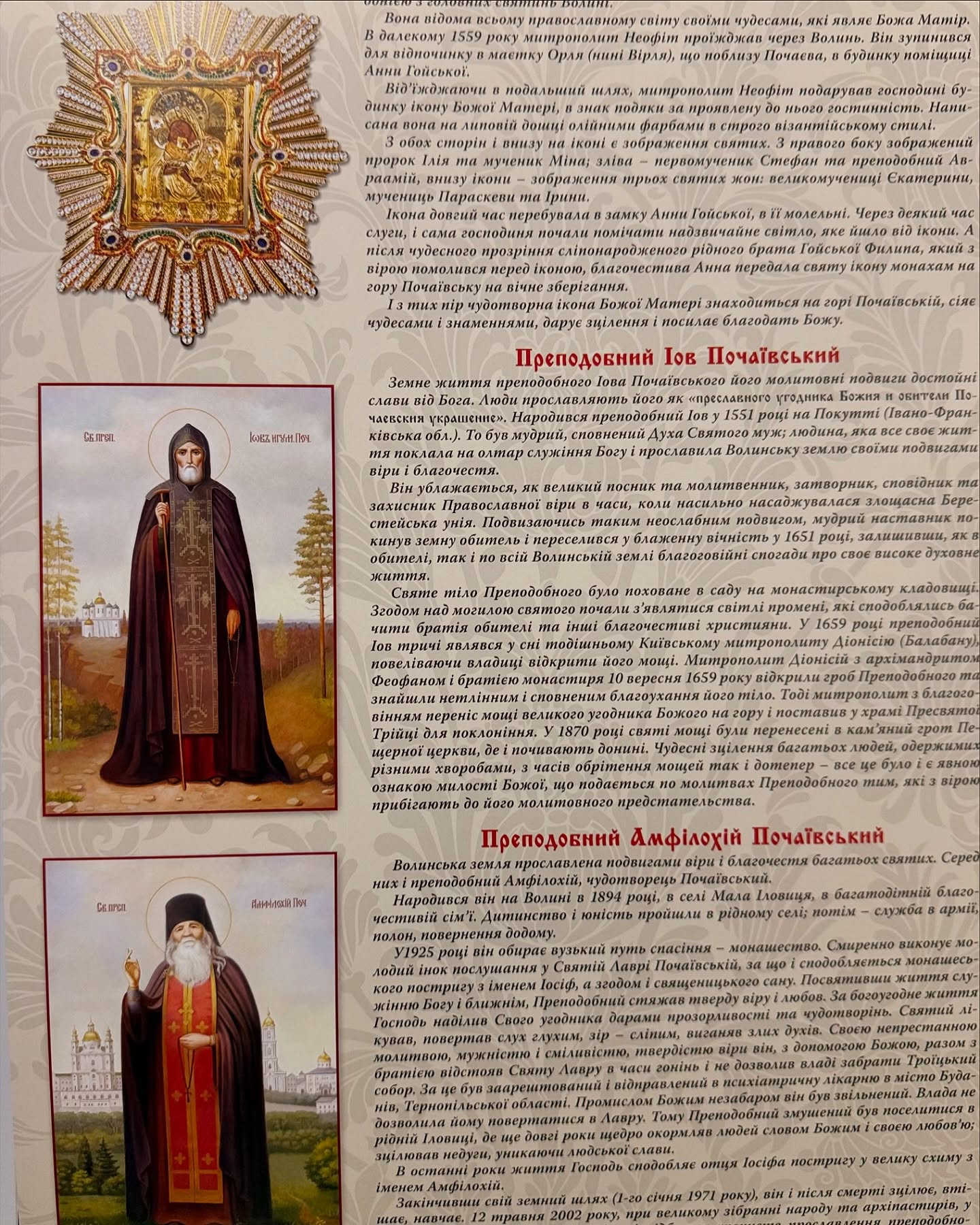 Елегантний дизайн із зображеннями чернечих богослужінь, іконами святих та лаврських пейзажів.