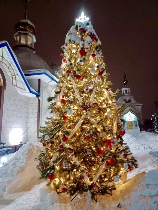 Традиційно, під час Всенічної на Введення в храм Пресвятої Богородиці, з початком співу «Христос рождаєтся, славіте!» - у нашому церковному дворі запалюється ялинка. Дякуємо усім, хто потрудився! Зі святом, дорогі друзі! Зі святом, православні!