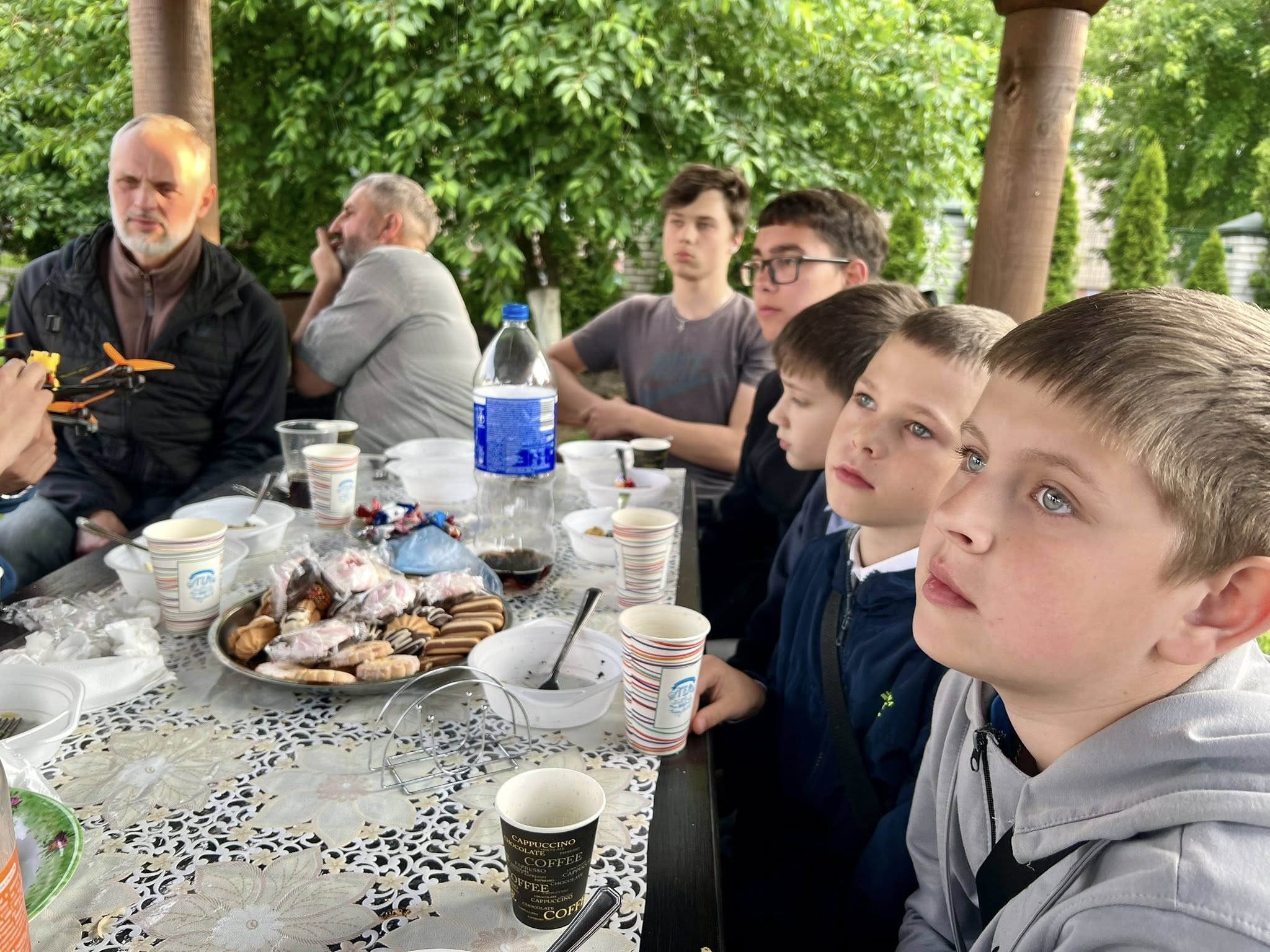 До зустрічі долучився воїн ЗСУ Серафим Назарук, який раніше багато років ніс вівтарний послух, аж поки не вирушив боронити Україну. Захисник поділився з підлітками своїм досвідом служби на фронті. Особливо жвавий інтерес викликала розповідь про використання безпілотних літальних апаратів, за які Серафим відповідає у своєму підрозділі.