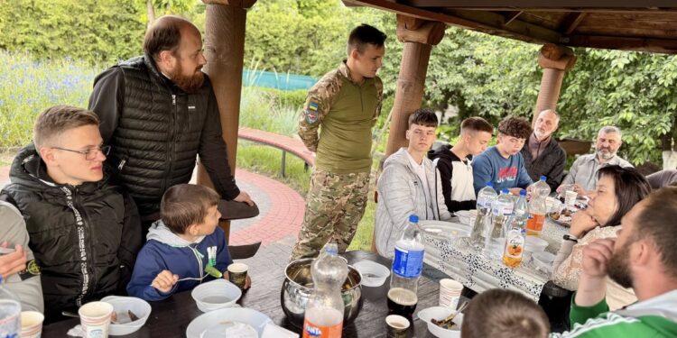 До зустрічі долучився воїн ЗСУ Серафим Назарук, який раніше багато років ніс вівтарний послух, аж поки не вирушив боронити Україну. Захисник поділився з підлітками своїм досвідом служби на фронті. Особливо жвавий інтерес викликала розповідь про використання безпілотних літальних апаратів, за які Серафим відповідає у своєму підрозділі.