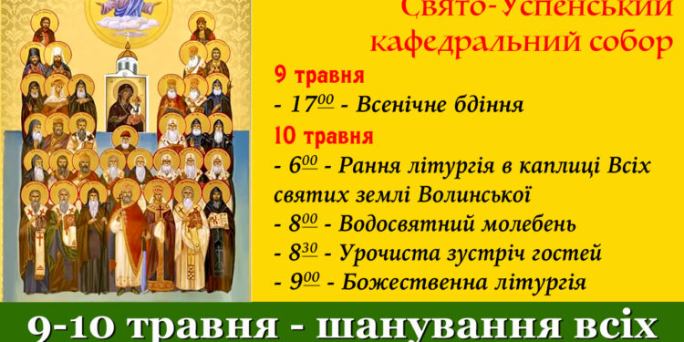 ✅ Запрошуємо на урочисте богослужіння з нагоди вшанування Всіх святих Землі Волинської!